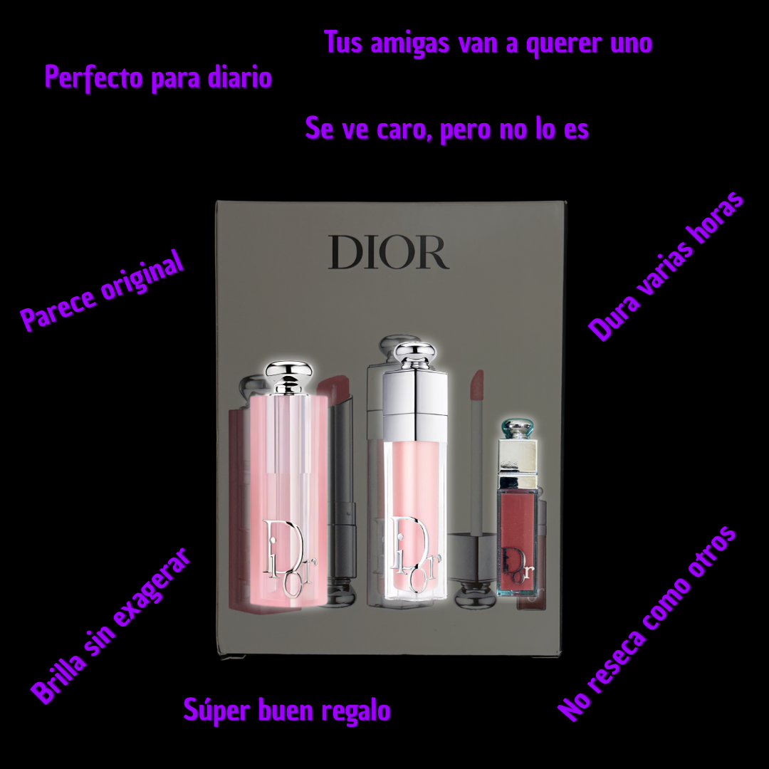 El set original de Dior supera los $3,000 MXN si se compra por separado. Nuestro set tipo inspired cuesta solo $1,199 MXN e incluye 3 piezas similares en tono, textura y duración. Ideal si buscas una alternativa económica y estética.